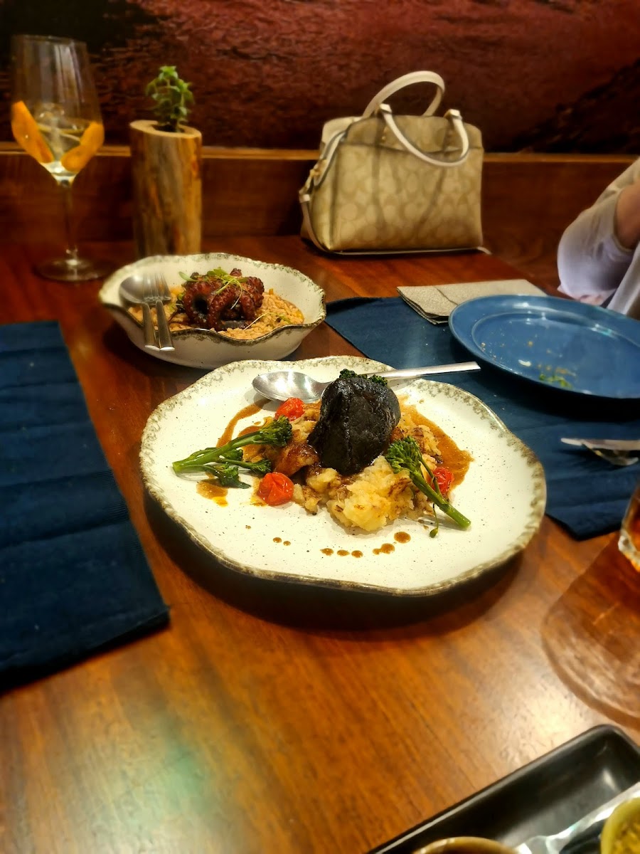 I had a really good time at Porto Ibérico. I started with a Port Tonic, to open my stomach to the great food coming later. They recommended the Octopus Risotto or the Veal with mash potatoes. I choose the later (I had seafood for lunch) and it was incredible. They recommended to use the spoon to eat, so I did. The meat was so tender than the spoon alone was enough to cut it. And the mash potatoes and veggies were also delicious and a perfect balance for the meat taste. Because the food was so good I decided to ask for dessert. I went with their recommendation of a cake (descriptions sounds like a sugar IV but it wasn’t at all, it was really balance) and a port wine they also recommended for pairing. And it was a great pairing! Highly recommended place for a great meal in a quiet area of Porto. And highly recommended to listen to their recommendations, they know their trade!